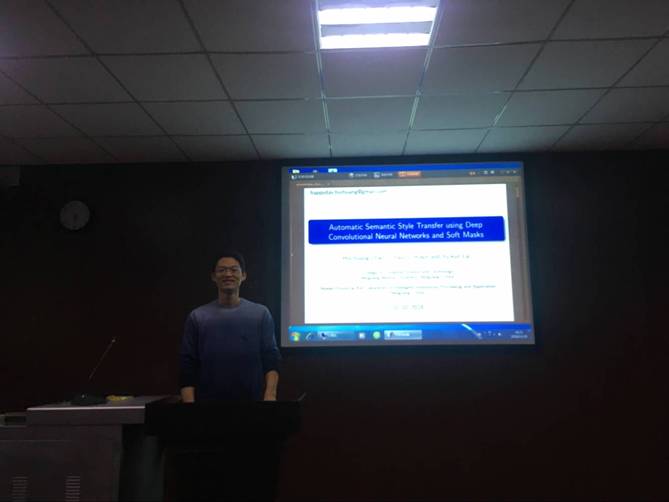 2018年11月28日下午6:30,在计算机楼305学术报告室,威尼斯官网赵辉煌博士作了题为“Automatic Semantic Style Transfer using Deep Convolutional Neural Networks and Soft Masks”的学术报告。